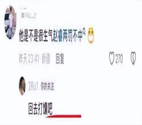 起因是他在社交媒体上与新疆球迷的隔空互怼。当有球迷评论“赵睿巅峰在广东,周琦在新疆”时,赵睿回应:“新疆边上待一待,自己人民都没有主观思想,都是别人带着跑。”随后面对“陈盈骏是不是气你两罚不中”的调侃,他直接回怼:“回去打馕吧。”